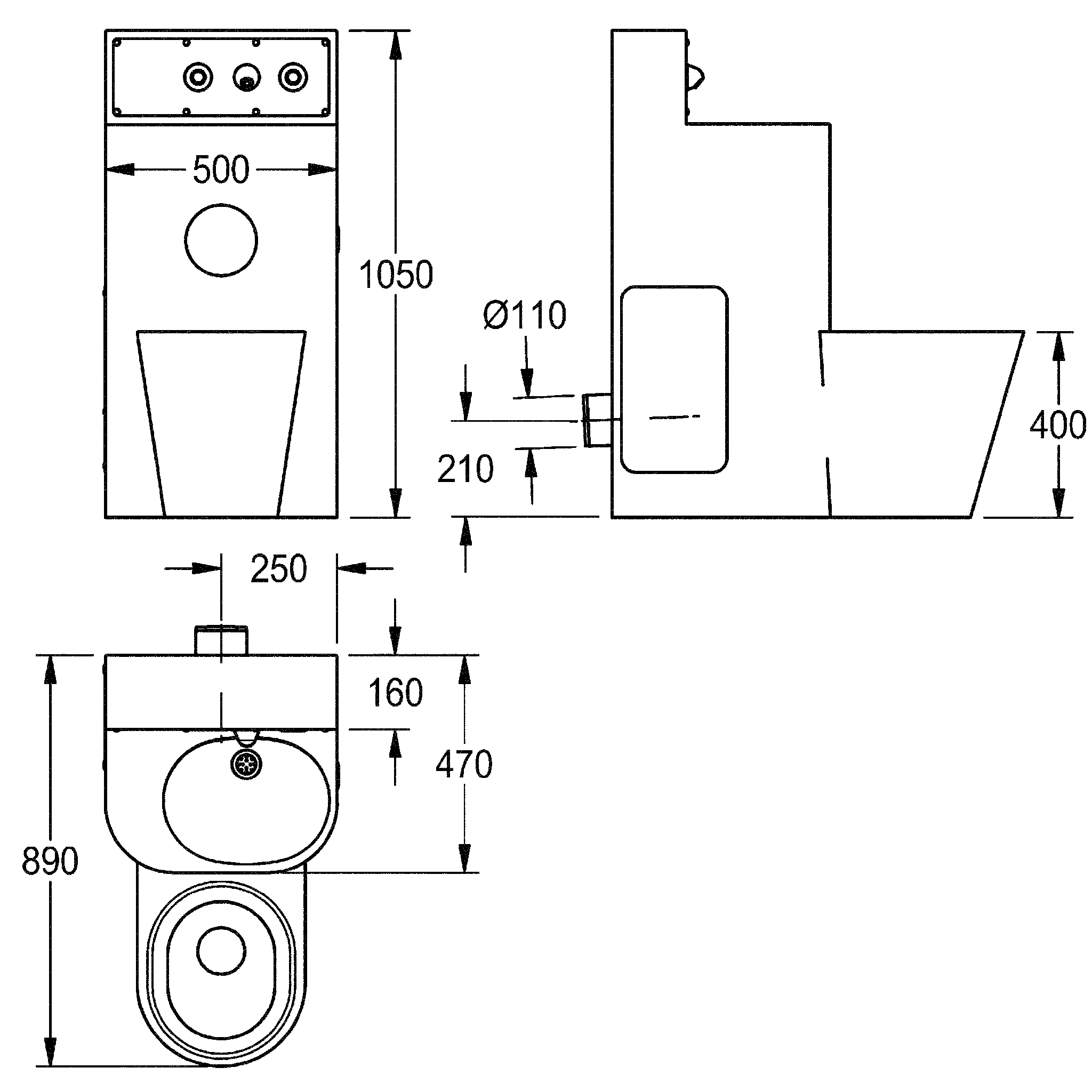 DVS Prison combination Unit - 500mm body with right, left or centre oriented WC.